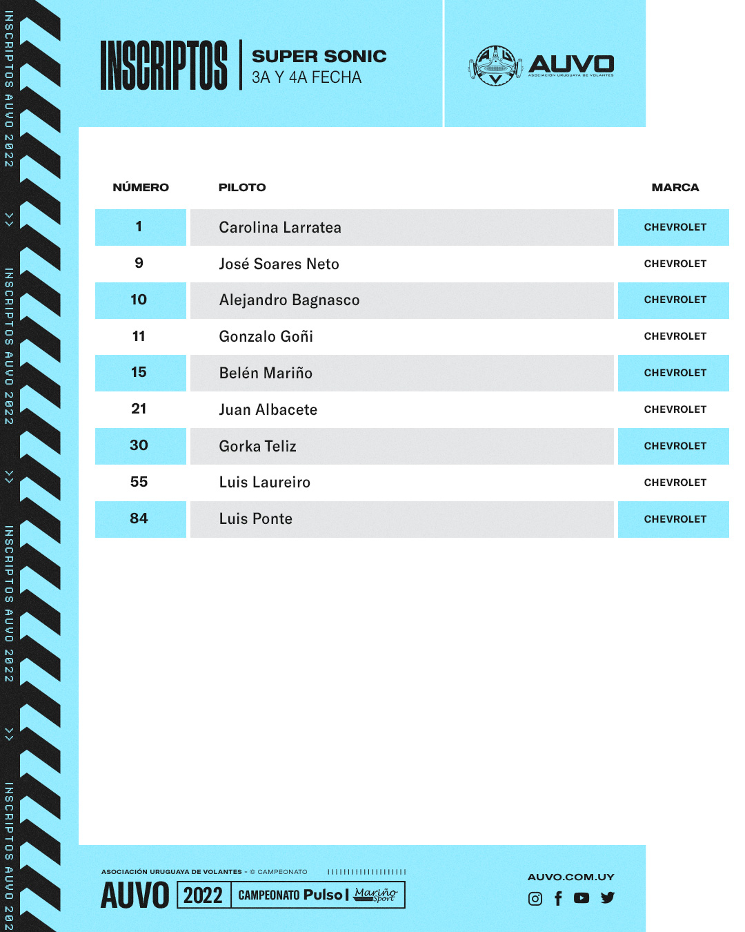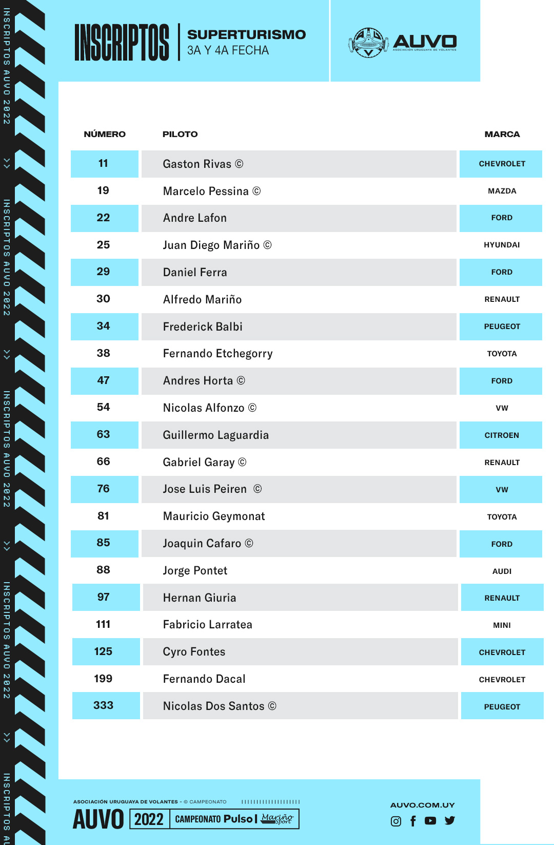 Se conocen ya los pilotos participantes en las tres categorías que llegarán a Rivera a representar a AUVO.